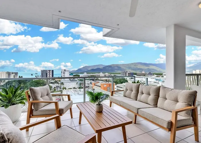 The Cairns Civic Theaterから徒歩で5分に位置する寝室2室のケアンズSkyview Luxe At Marquisアパートメントでは、ビジネスにもレジャーにもWiFiを利用することができます。 ケアンズ水族館少し離れたに位置するこの157m²のアパートは、海の景色を見渡せるテラスを提供しています。